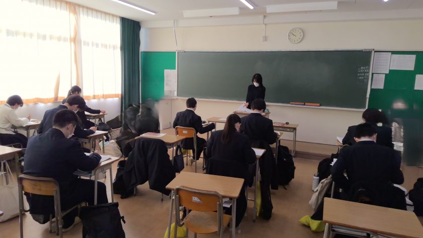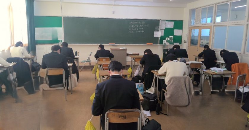 新年、3年生文理系は大学入試共通テスト直前演習を行っています。 受験本番を想定した緊張感の中で、これまでの学習の成果を確認しながらの最後の仕上げです。
