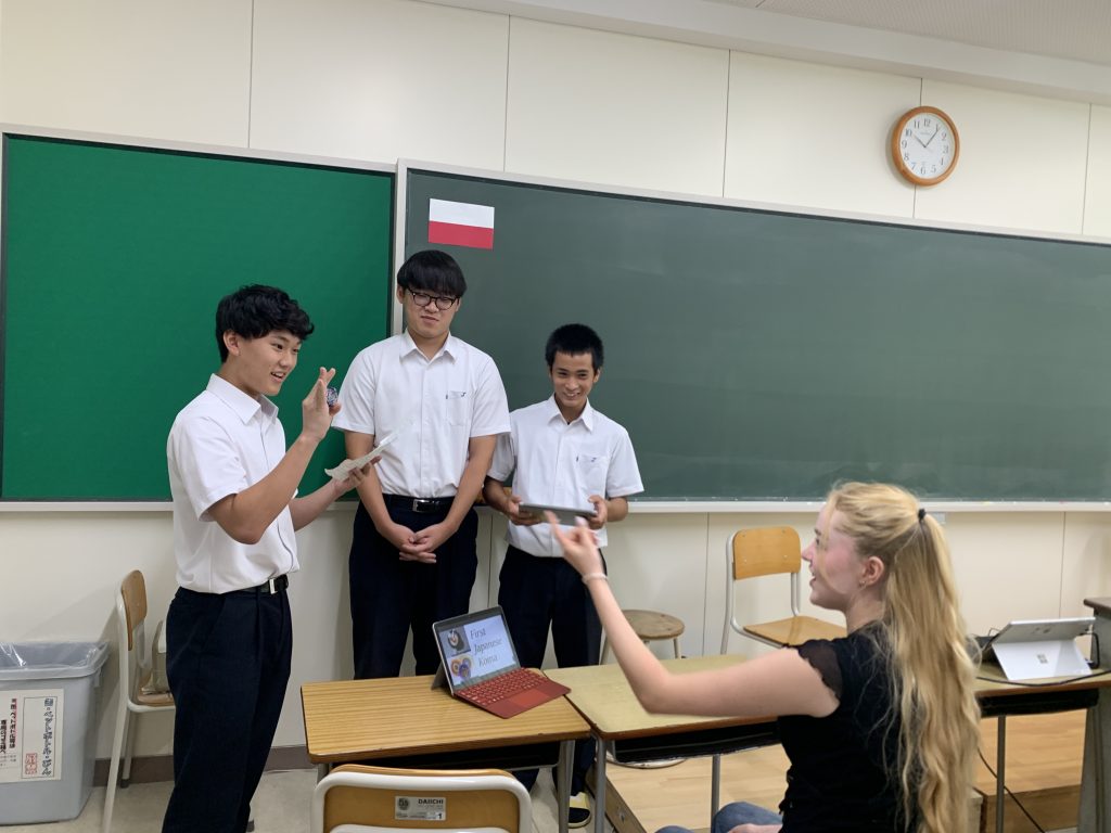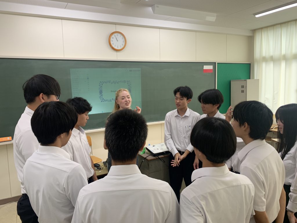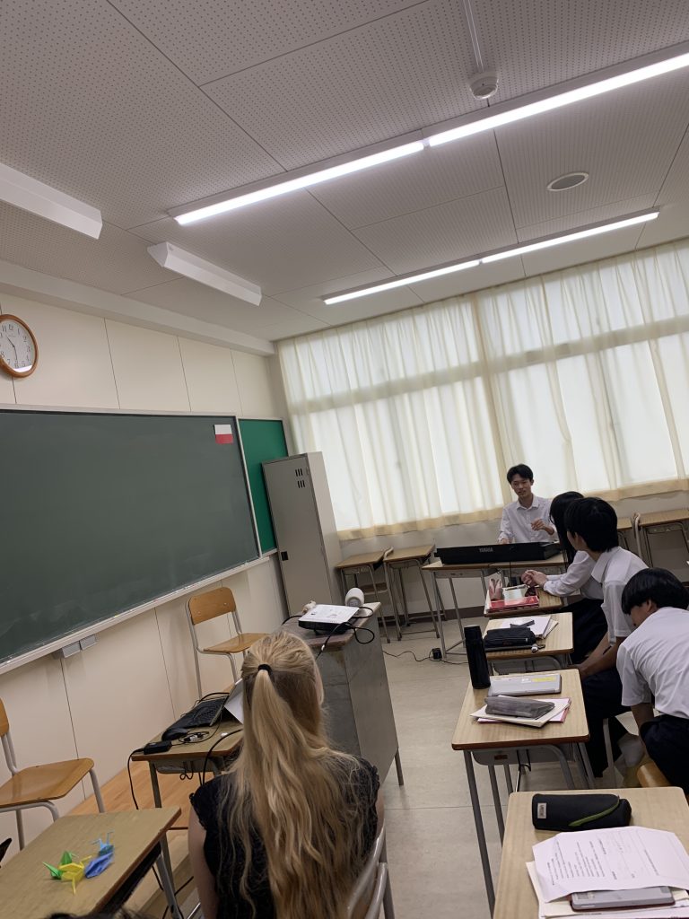 文理系3年生の総合選択科目「英語探究γ」の授業において、Kamilaさんからポーランドについての様々な話を聞いたり、“Hot Potatoes”(アクティビティ)をしたりしました。また、本校の生徒が日本のPop Cultureを紹介したり、ポーランド出身の作曲家ショパンの曲をピアノで弾いたりして交流し、参加した生徒は英語で質疑応答するなど、積極的にコミュニケーションを図っていました。