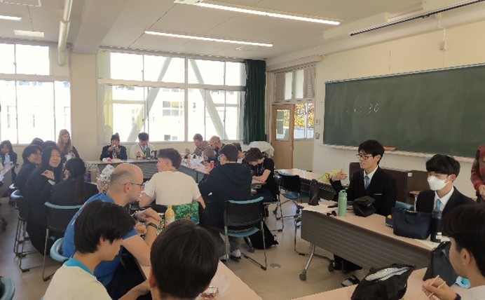新城市の若者議会に参加している生徒や国際交流に関心のある生徒らがたくさん集い終始賑やかでした。