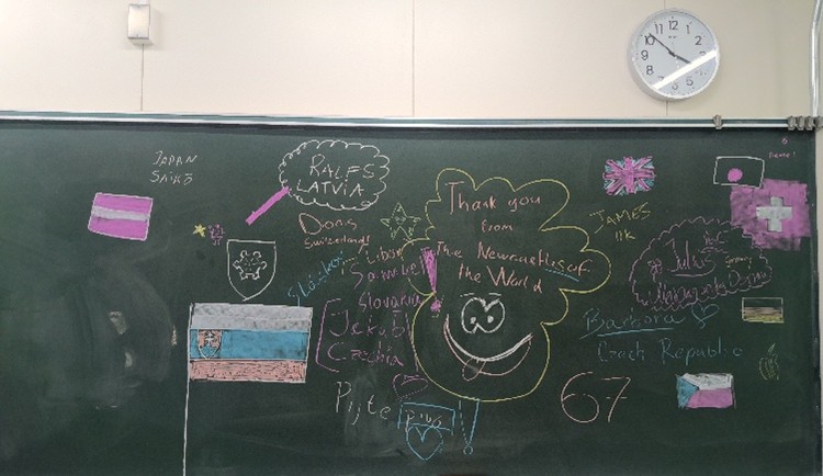 ↓休憩時間中に海外ニューキャッスルユースたちが書いたメッセージとイラスト