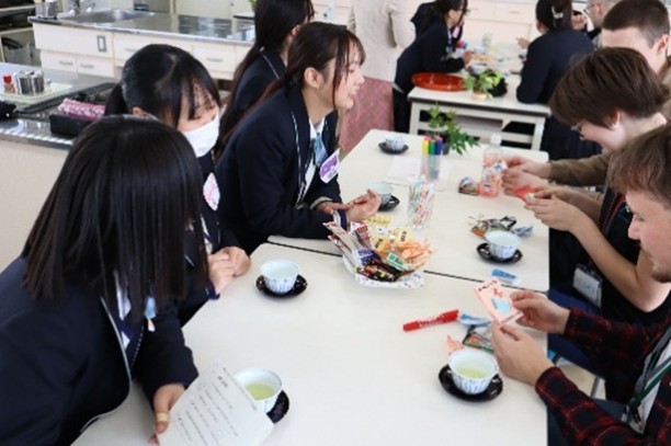 5時限目には、専門系3年生の「課題研究」の授業において、生活創造系列・食生活の生徒が「Welcome Tea」交流をしました。ユースの方々は、コーヒーや紅茶よりも“煎茶”を好まれました。生徒による温かい“おもてなし”ができました。