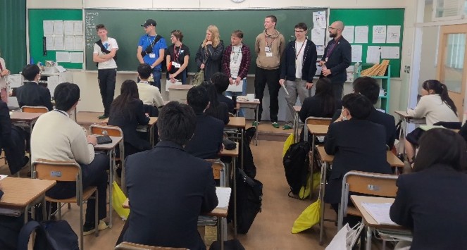 11月7日(金)、本校に「海外ニューキャッスルユース」の若者8名をお招きして、交流を行いました。新城市役所主催の「海外ニューキャッスル若者議会10周年記念事業」で、ラトビア、ドイツ、スイス、チェコ、スロバキア、イギリスの6ヵ国から来日されました。