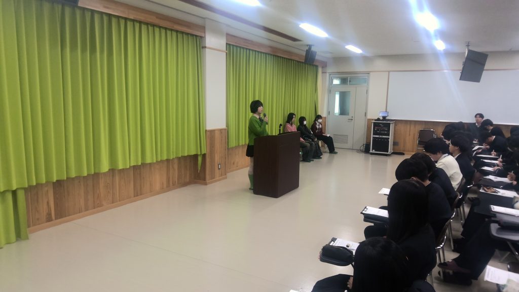 お知らせ/学校生活 「卒業生講話」 2026年3月11日 3月11日(水)、昨年3月に卒業した専門系4期生による「卒業生講話」を、1年生専門系対象に実施しました。 大学、短期大学、専門学校、就職とそれぞれ希望する進路先に進んだ卒業生から「評定が大切」「部活動を3年間継続すること」「積極的に資格を取得する」「オープンキャンパスに積極的に参加する」など、実体験を踏まえた示唆に富んだ講話をしていただきました。 来週、文理系を対象にした講話を実施する予定です。