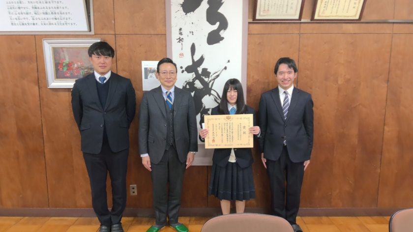 本校1年生の生徒が「税の意義と役割について考えたこと」で新城税務署長賞を受賞しました。 受賞作品は先月、ピアゴ新城店において展示していただきました。 12月3日(水)本校において、新城税