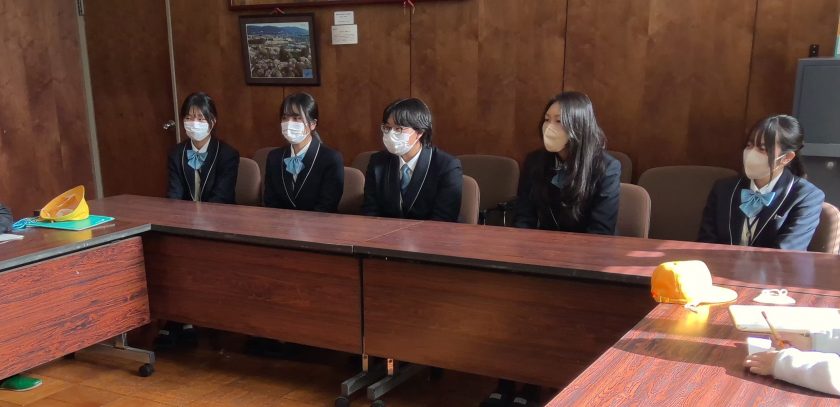 12月4日(木) 新城小学校の2年生が、生活科「町たんけん」の授業で本校にインタビューに訪れました。本校からは2年生の生徒5名が対応し、小学生からの質問に優しく答えていました。