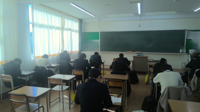 新年、3年生文理系は大学入試共通テスト直前演習を行っています。 受験本番を想定した緊張感の中で、これまでの学習の成果を確認しながらの最後の仕上げです。
